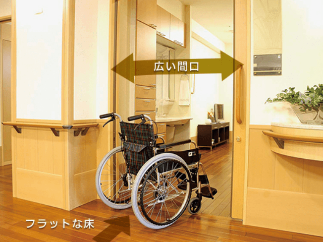 介護住宅の共用部分は、車いすや歩行器でも移動がしやすく、転倒防止を考慮した設計になっています。