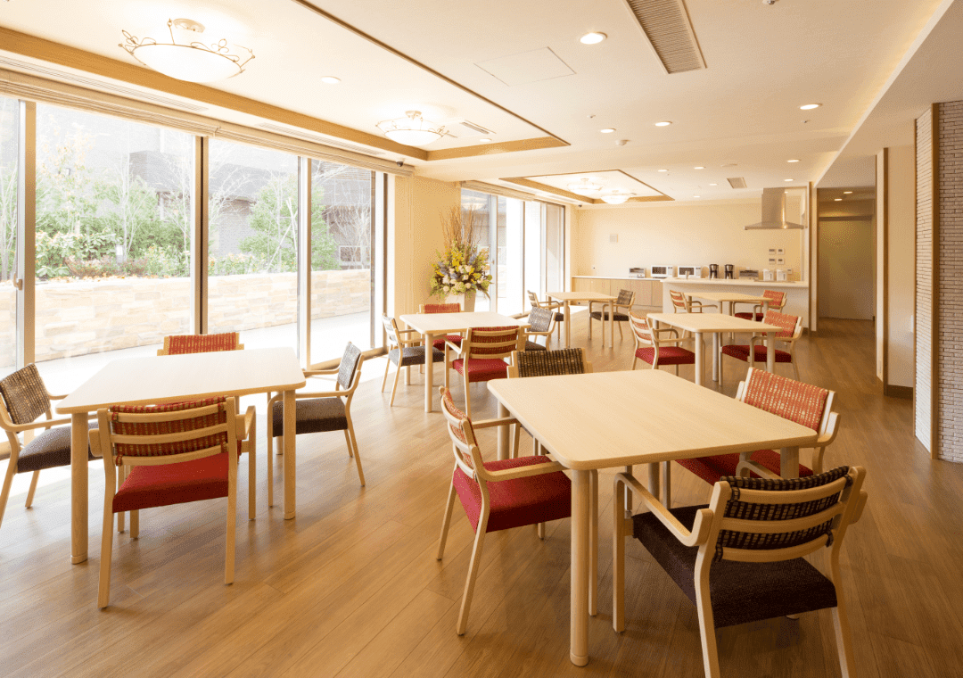 ご入居者やスタッフが集まるデイルームは、明るく開放的で、上質で落ち着いたインテリアを取り揃えているため、日々の生活を通して、安心感や安らぎを感じていただける空間をご用意しております。