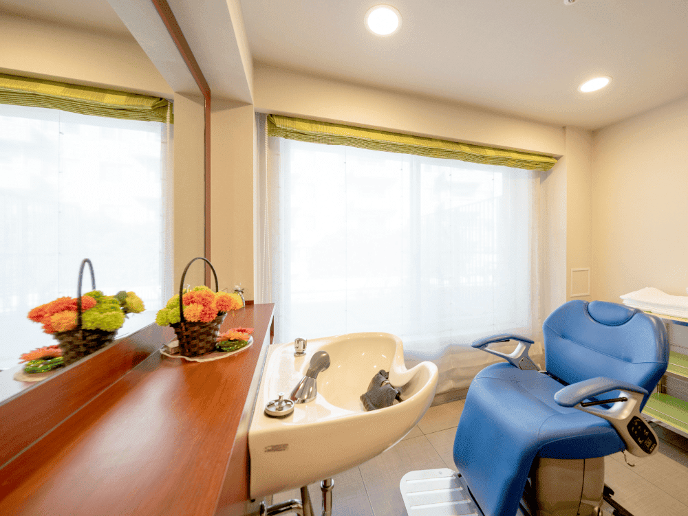 いつまでも美しく併設されているビューティーサロンでは指定日に、住宅指定の理美容業者からヘアケアサービスを受けることができます。