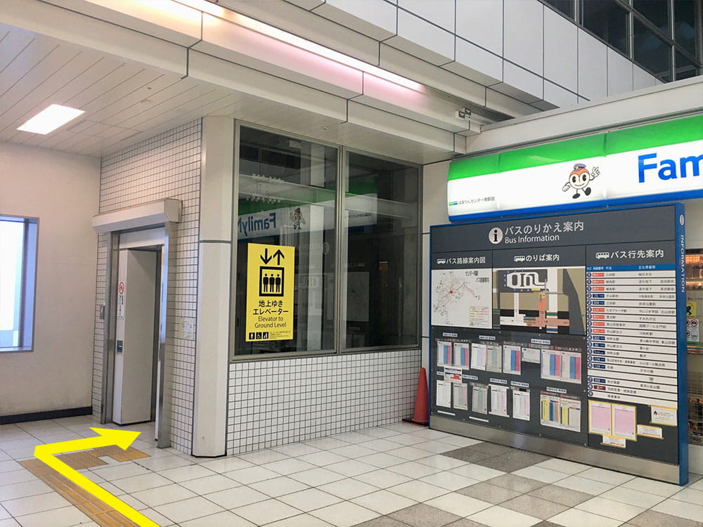 ファミリーマートを目印に左に曲がるとすぐにエレベーターがあります。 ![]()  2