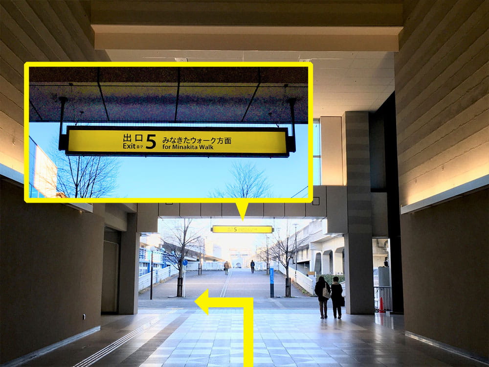 エレベーターで1階に下りたら正面に約50m進み、「出口5」へ向かいます。 ![]()  3