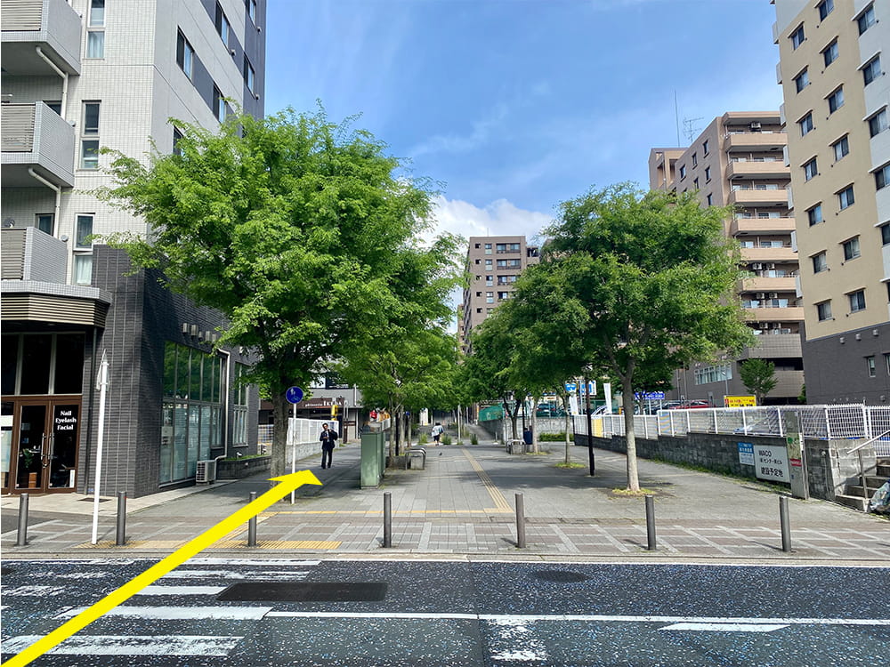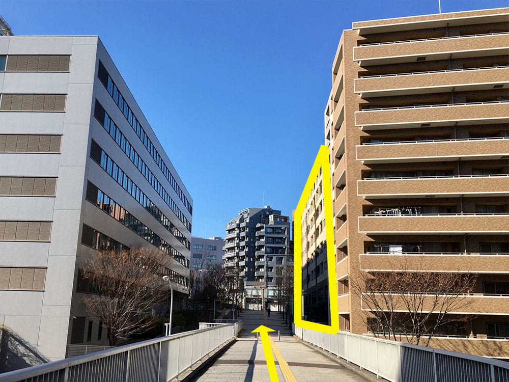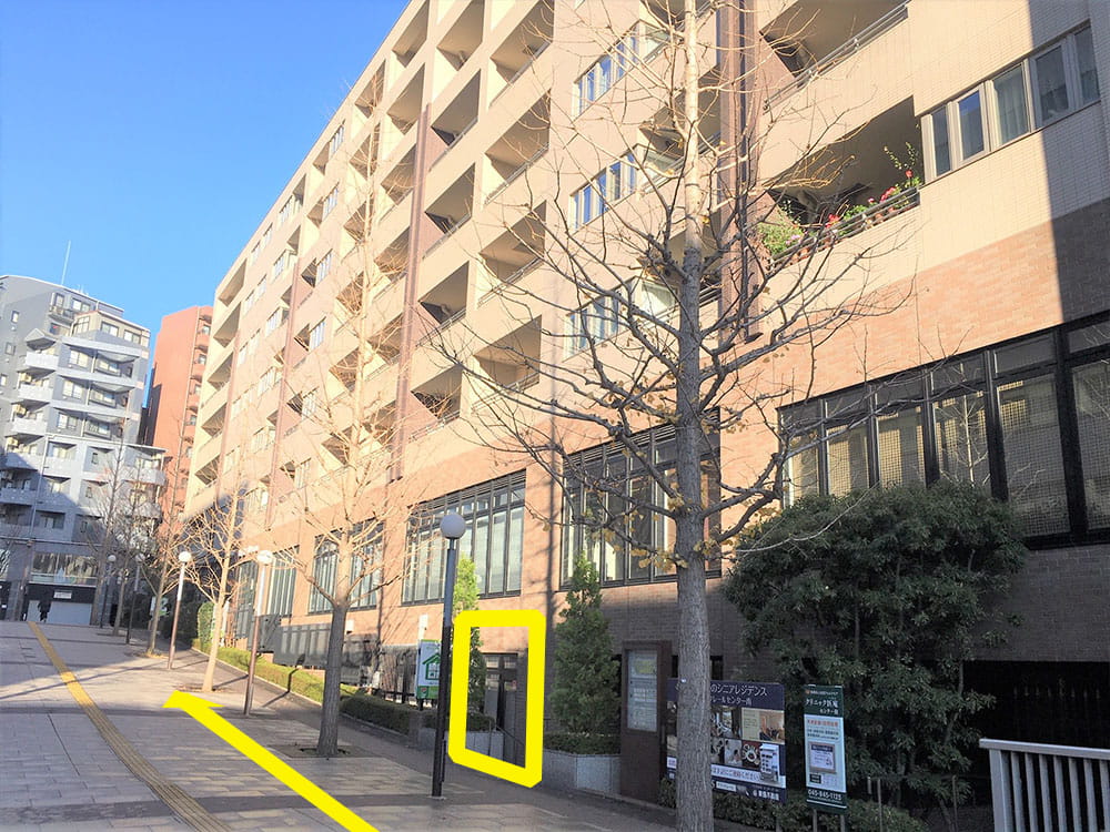 入居者用のサブエントランスを通り過ぎ、建物沿いに角までまっすぐ進みます。 ![]()  7